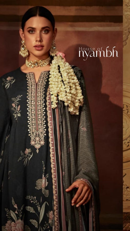 Indulge in elegance with our exquisite ensemble featuring a TOP crafted from Pure Maslin adorned with a captivating digital print. The cream dori scalloped embroidery on the hemline and sleeves adds a touch of sophistication. Complementing this is a DUPATTA made from Pure Chinnon with a stunning digital print and cream dori scalloped four-side embroidery border. The ensemble is completed with a luxurious BOTTOM made from Pure Cotton Satin, showcasing cream dori embroidery on the front. Elevate your style with this graceful combination of traditional craftsmanship and contemporary design.